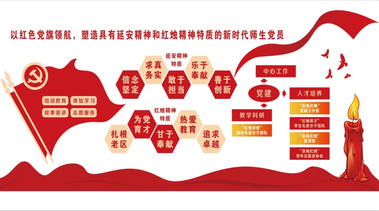 教科院本届党委领导班子于2020年形成,教科院党委坚持以“延安精神”和“红烛精神”为指引,创建“圣地红烛”党建品牌,推动党建工作紧紧围绕“三个结合”,即与教学科研相结合、与中心工作相结合、与学生成长成才相结合,充分发挥基层党组织战斗堡垒作用。