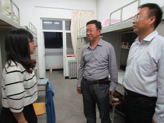 9月11日,学校王书记、崔校长、田副书记及两办和学工部的领导来到我院接待处检查指导工作,王书记、崔校长询问新生报道情况,学院副书记杨文军向学校领导汇报了新生接待工作安排及报到情况。