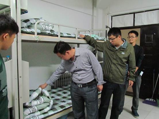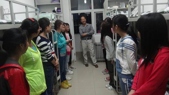 9月12日下午,为使新生尽快熟悉校园,我院组织2014届全体新生从窑洞广场出发,由辅导员带领,学生会干部为新生详细介绍学校的各栋建筑,使他们了解学院办公室、图书馆、教学楼的具体位置。晚上,院长张社争、副书记杨文军、科研秘书冯晓江、辅导员高飞翔、王会青等学院领导和老师在当天晚上深入宿舍看望新生。师生们如家人般交谈,谈家乡、谈文化、谈美食。学院领导在讲解学院工作的同时,也提醒新生注意在校与外出安全,使他们感受到来自院领导的关心与重视。