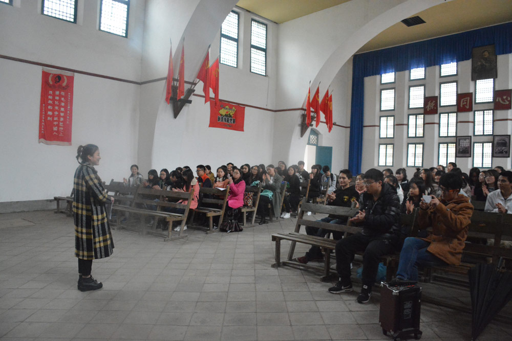 社会实践课在杨家岭旧址中央大礼堂内进行,在深刻的感受延安红色经典氛围的同时,我院学生党支部邀请的历史系优秀学生苑志鑫同学向在座的各位同志讲述了中共从一大到七大和中共中央在杨家岭的历史,也让大家深刻认识了毛泽东同志在杨家岭居住的五年中对中国民主革命的重大影响。