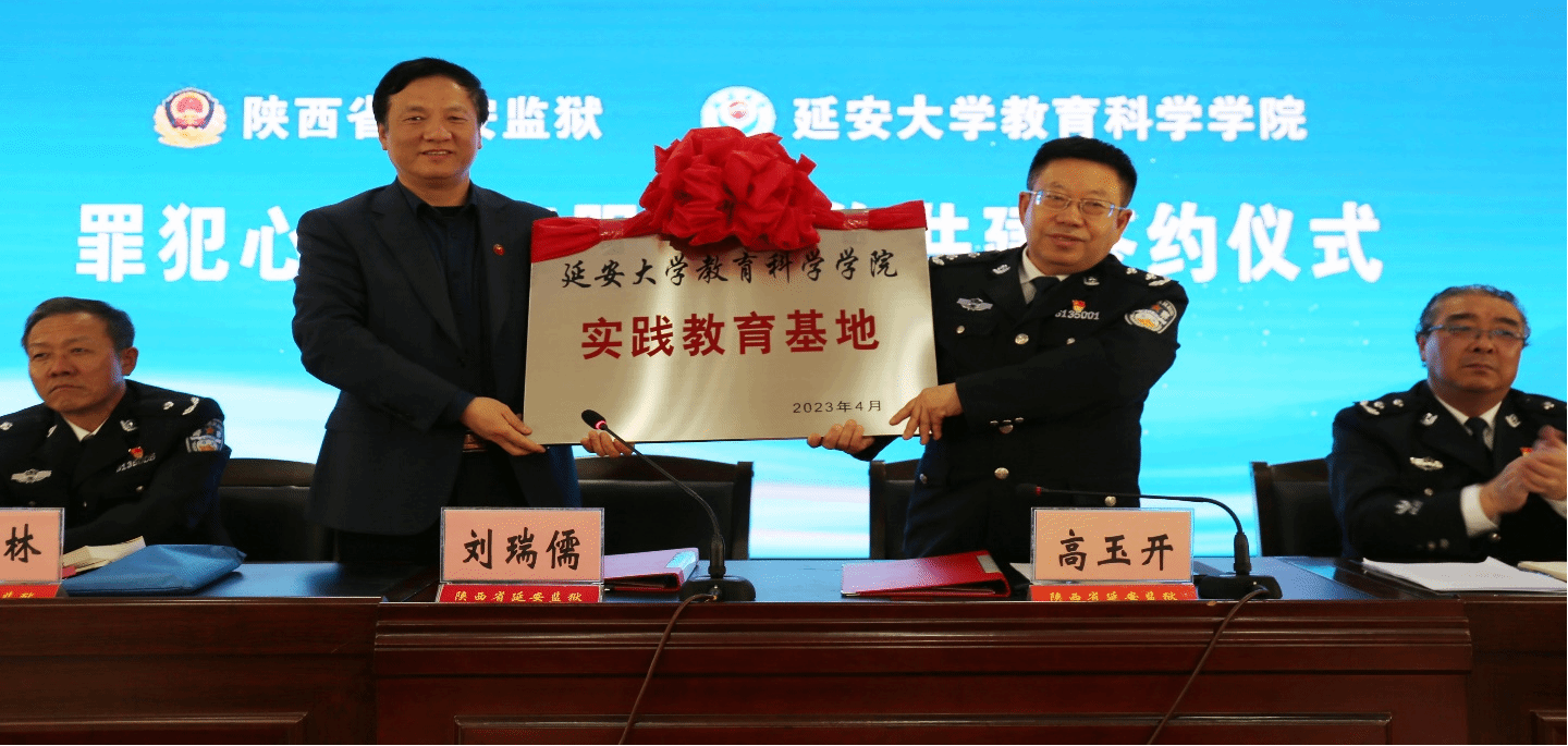 2023年4月24日下午,我校教科院与陕西省延安监狱合作共建协议签约仪式在延安监狱举行。我校教科院院长刘瑞儒,心理咨询中心主任石梅,心理系主任符永川,原教科院副院长武海明,教科院辅导员乔雪及心理学专业20级全体学生;延安监狱党委书记、监狱长高玉开,党委副书记、政委张万海,党委委员、副监狱长邓小林、朱春光、邵建华,监狱企业副总经理蔡建功及延安监狱部分中层领导和干警近百人参加了签约仪式。签约仪式由邵建华同志主持。