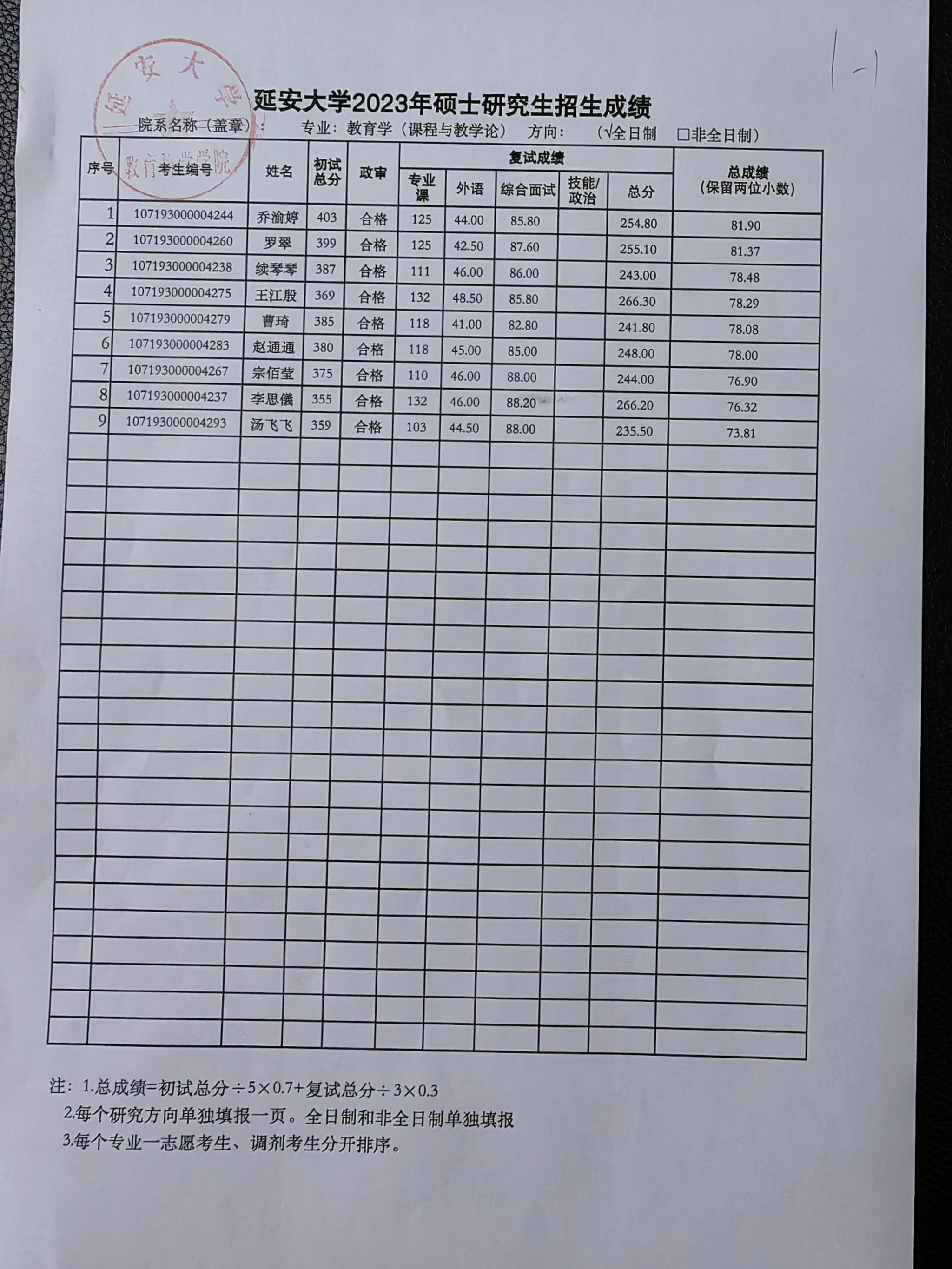 腾博官网诚信为本专业服务教育科学学院2023年硕士研究生招生成绩(一志愿)