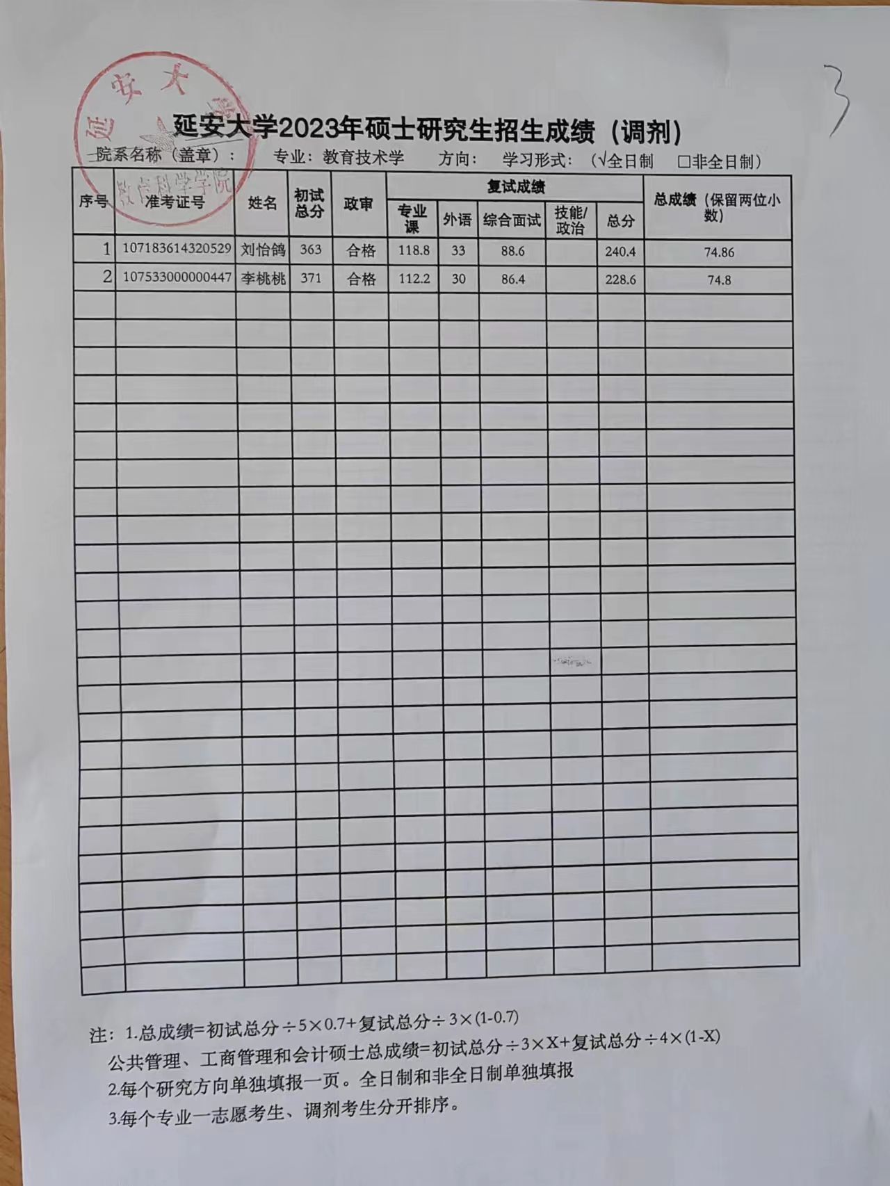 腾博官网诚信为本专业服务教育科学学院2023年硕士研究生招生成绩(调剂)