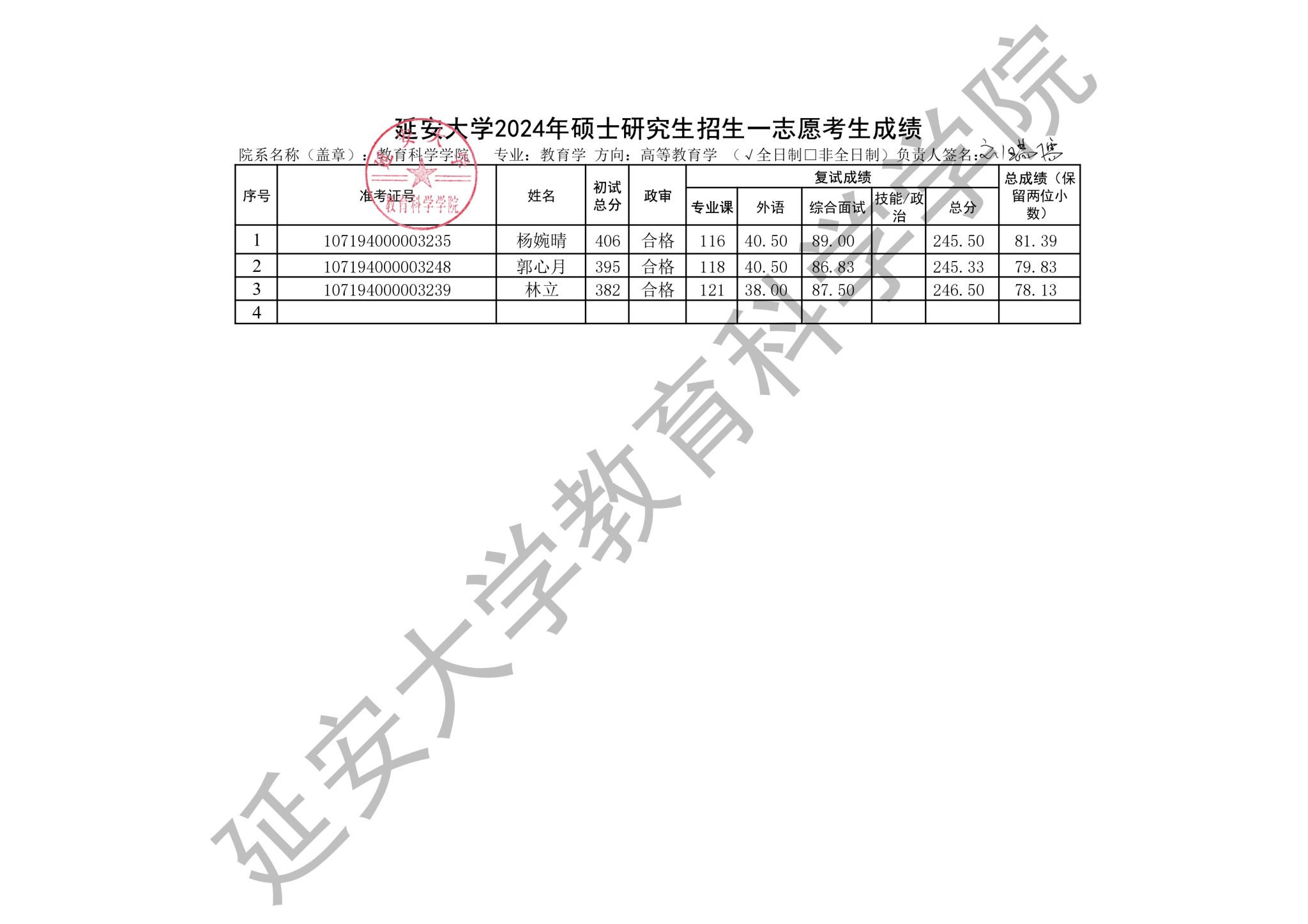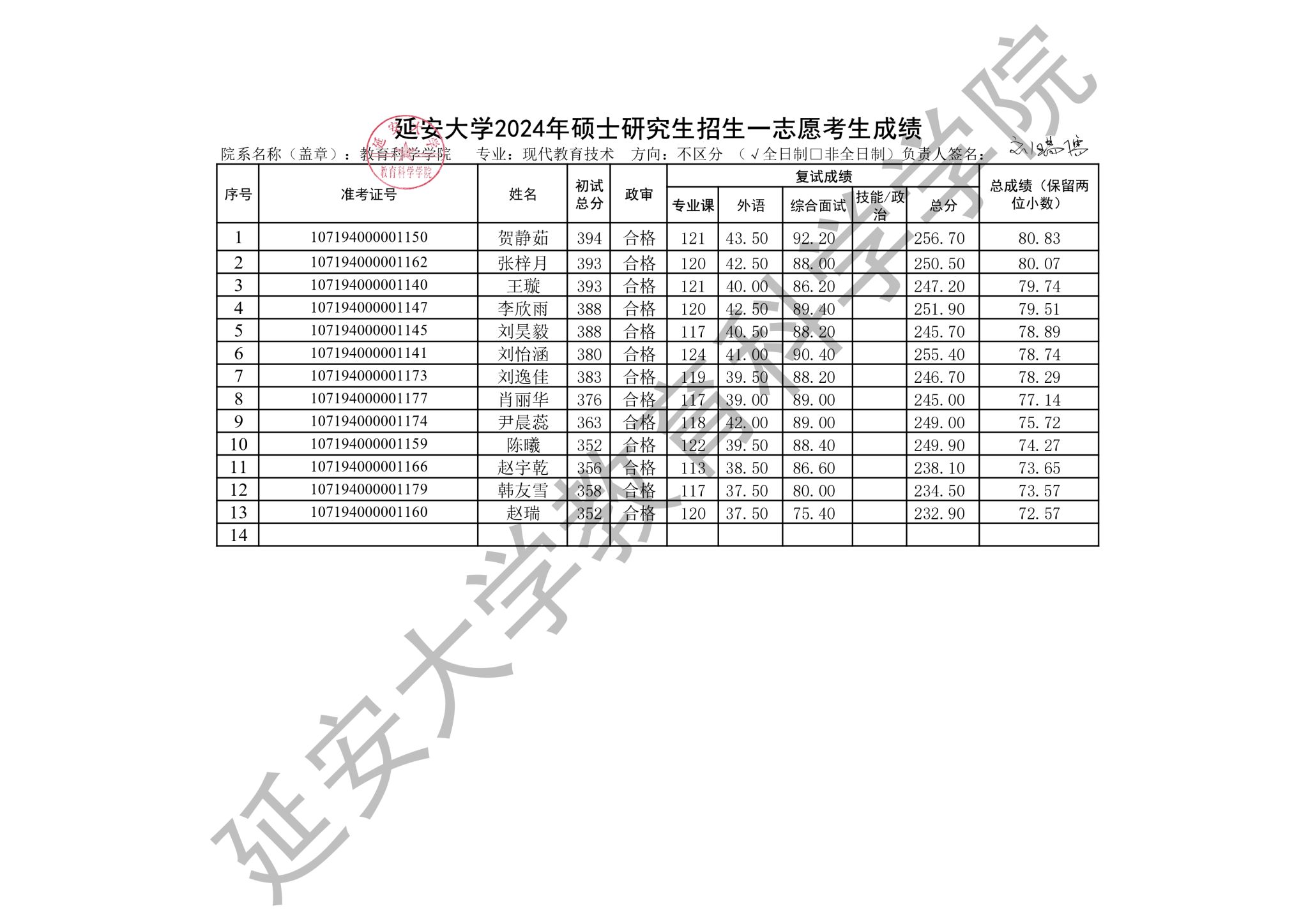 依据我院2024年硕士研究生复试工作实施方案,于2024年3月29日至3月31日的一志愿考生复试工作已圆满结束,现将具体复试成绩予以公示,公示时间为十个工作日,于公示期间如有疑议,请联系: