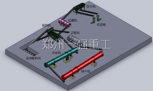 有机肥生产线包括发酵设备、造粒设备、粉碎设备、搅拌设备、筛分设备、冷却设备、烘干设备、包膜设备、自动包装设备等工艺流程。